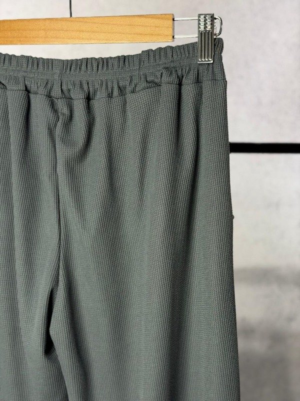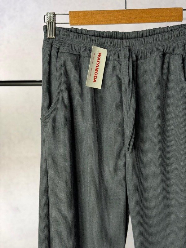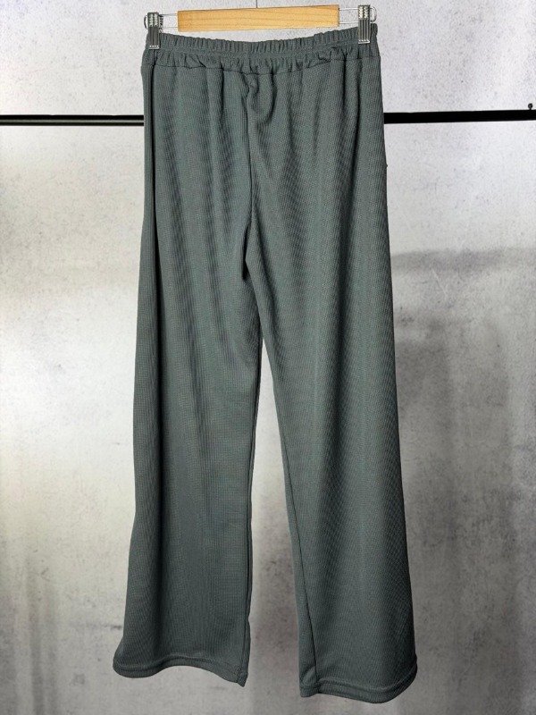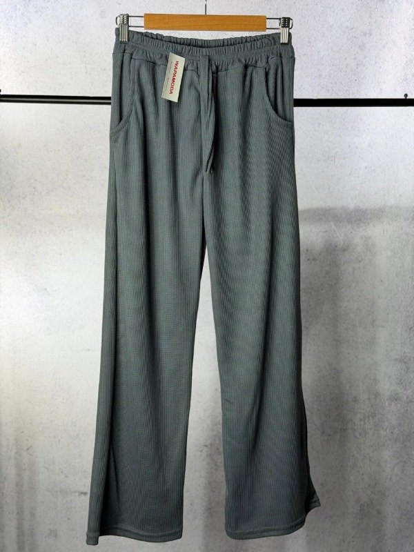 PANTALON PALAZO GRIS TOPO WAFFLE