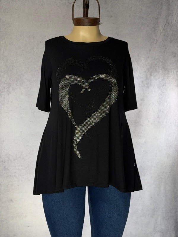 REMERA 2 CORAZONES NEGRA EVASE 5 AL 10 MODAL