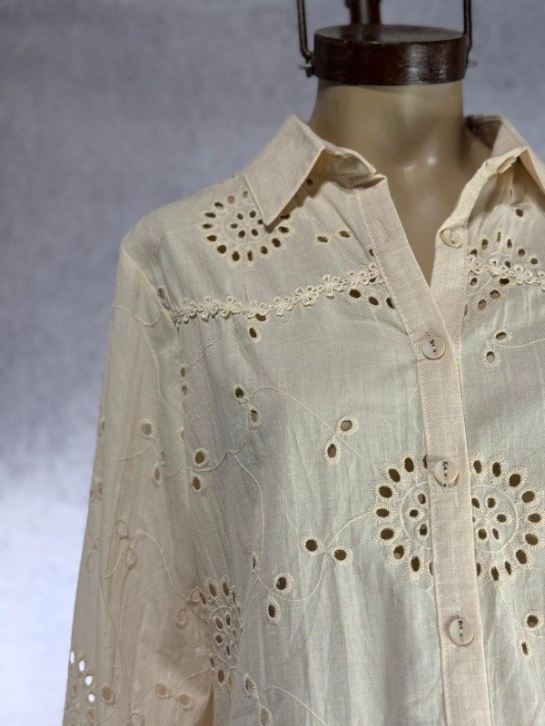 CAMISA GALA BEIGE BRODERIE IMPORTADA