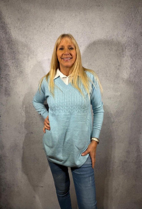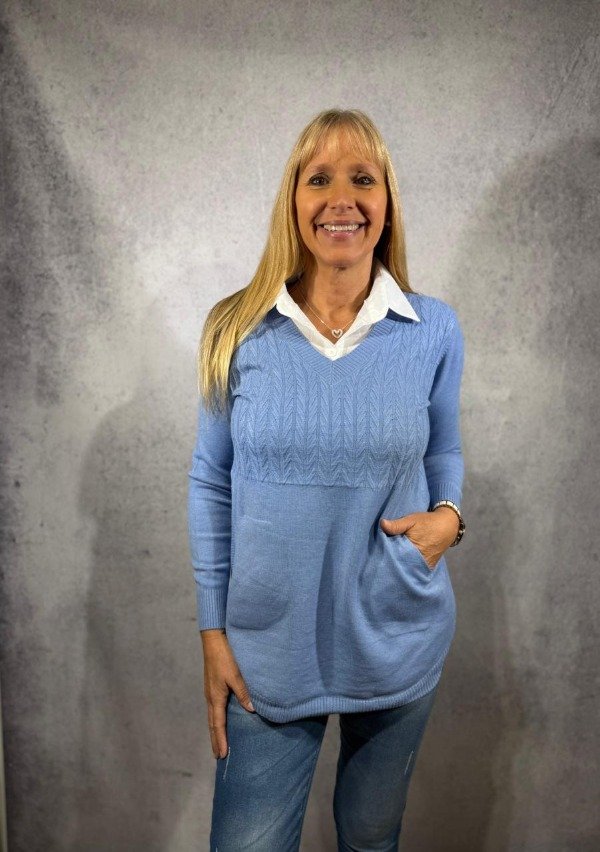 SWEATER CON CUELLO DE CAMISA Y BOLSILLO IMPORTADO
