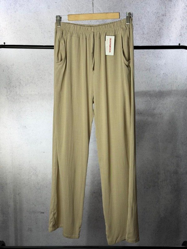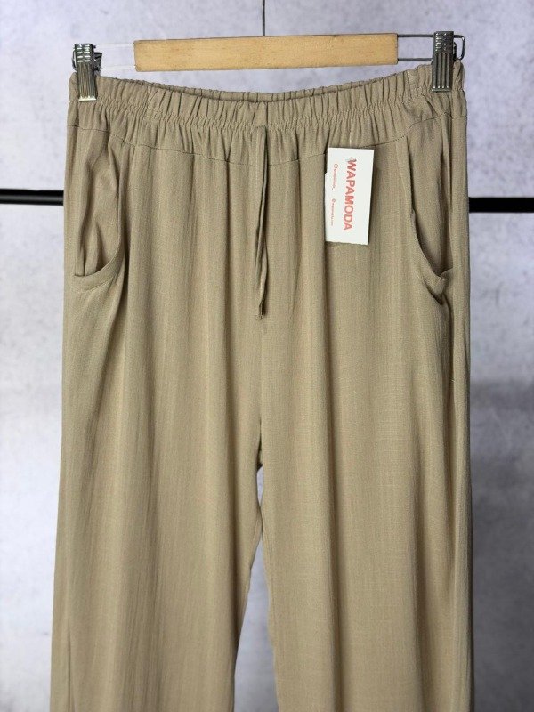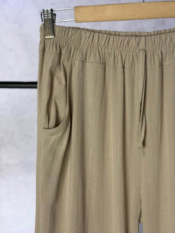 PANTALON BEIGE PALAZO PAULA LINO ELASTIZADO