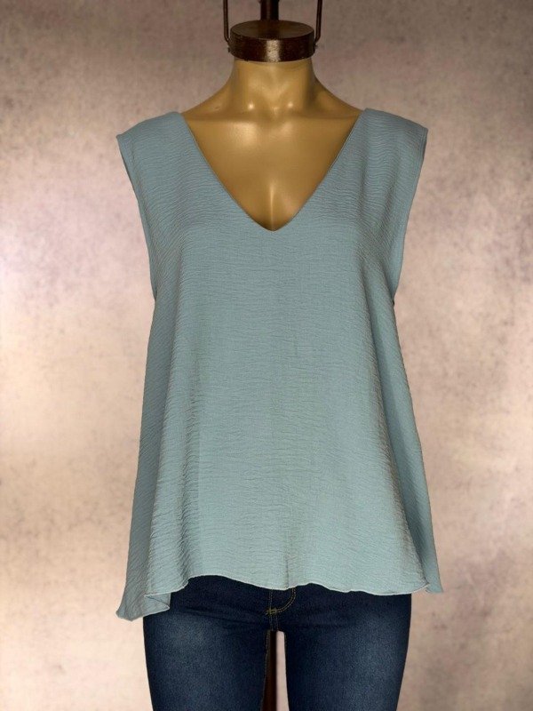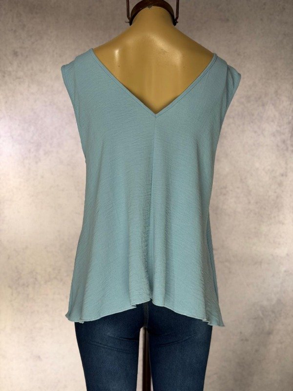 BLUSA CELESTE OSCURO LINO CEY FORRADA ESCOTE V