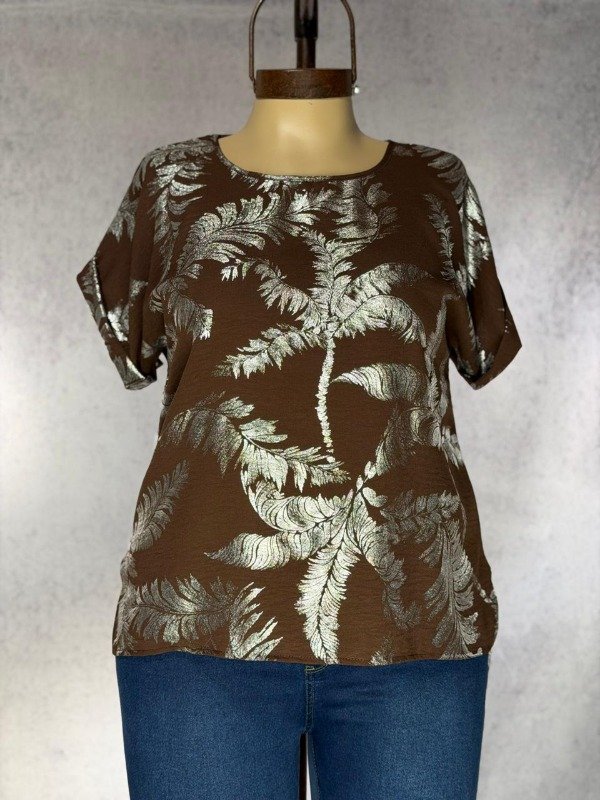 REMERA LINO CEY CHOCO PALMERAS PLATEADAS