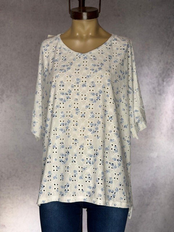 REMERON BLANCO Y CELESTE BRODERIE FLOREADO