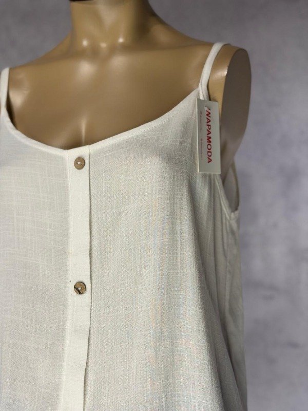 MUSCULOSA BLANCA LINO ELASTIZADA CON BOTONES