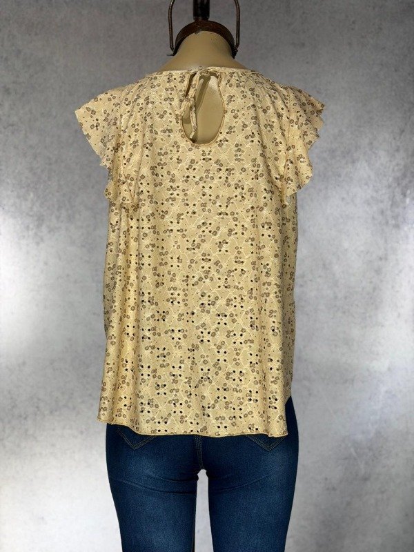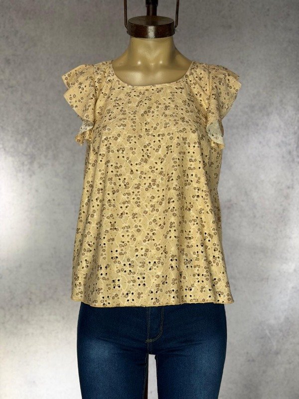 MUSCULOSA BRODERIE BEIGE FLOREADA CON VOLADO