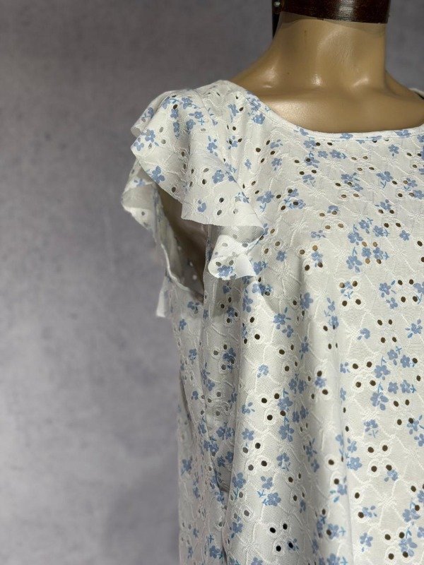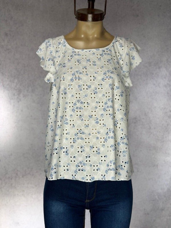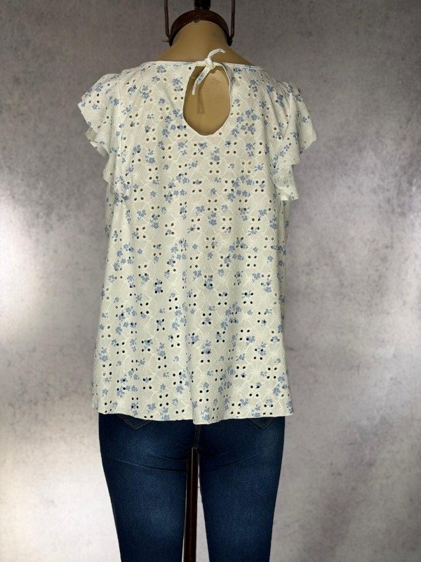 MUSCULOSA BRODERIE BLANCA Y CELESTE CON VOLADO