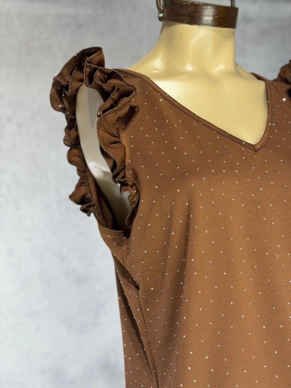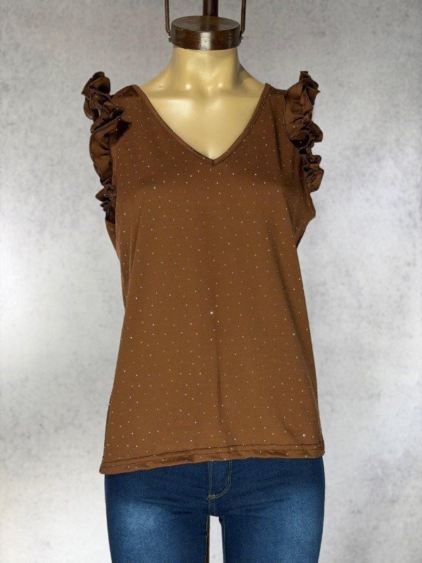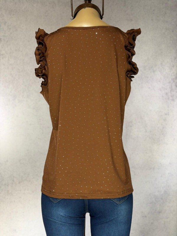 MUSCULOSA CHOCO LYCRA STRASS Y VOLADOS