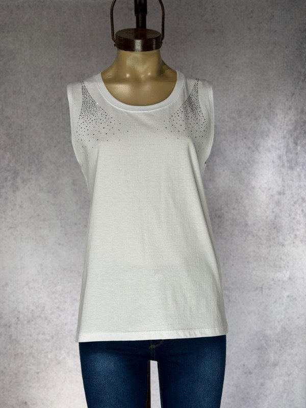 MUSCULOSA HADID BLANCA ALGODON STRASS