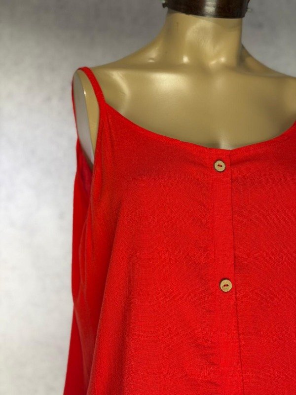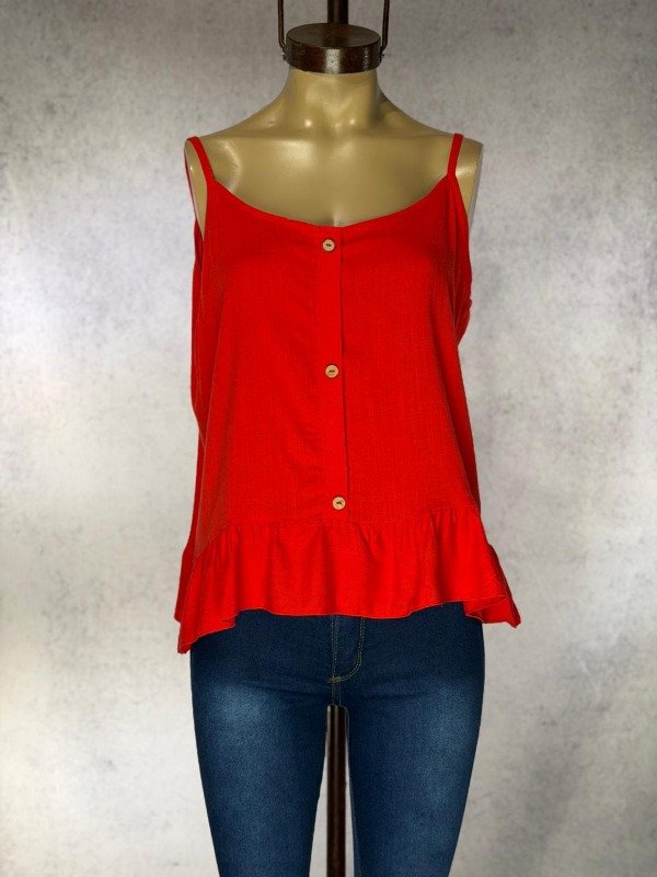 MUSCULOSA ROJA LINO ELASTIZADA CON BOTONES
