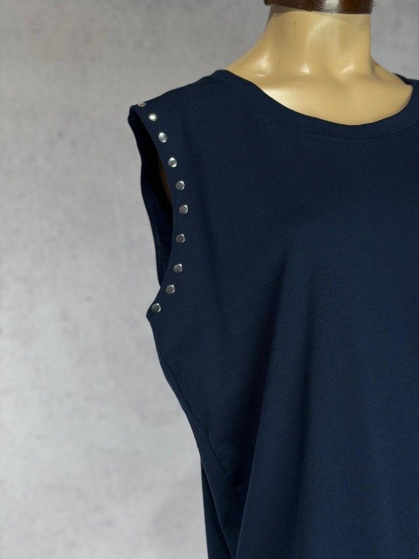 MUSCULOSA AZUL TACHAS ALGODON CON LYCRA