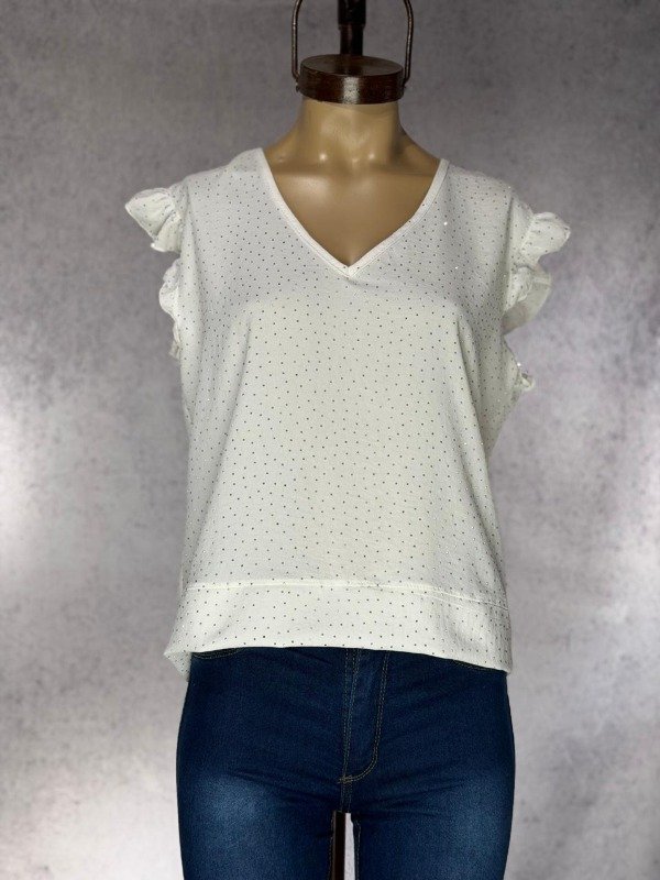 MUSCULOSA BLANCA LINO CEY STRASS Y LAZO ATRAS