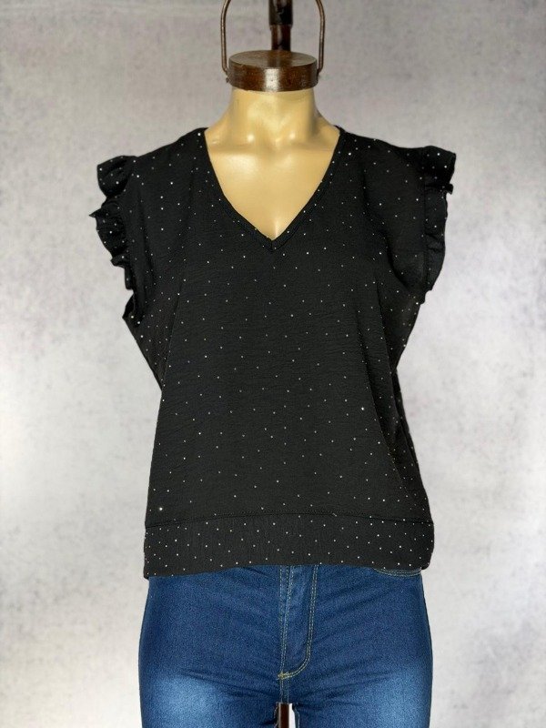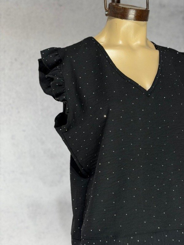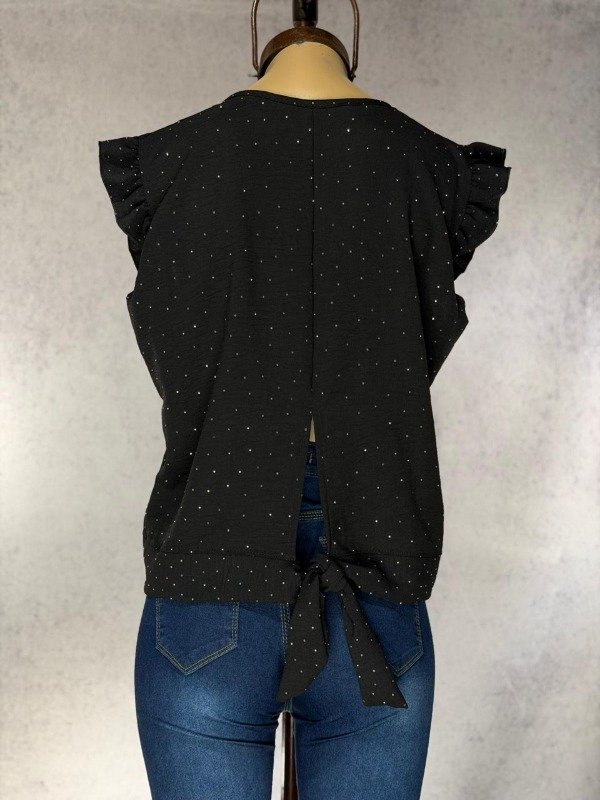 MUSCULOSA NEGRA LINO CEY STRASS Y LAZO ATRAS