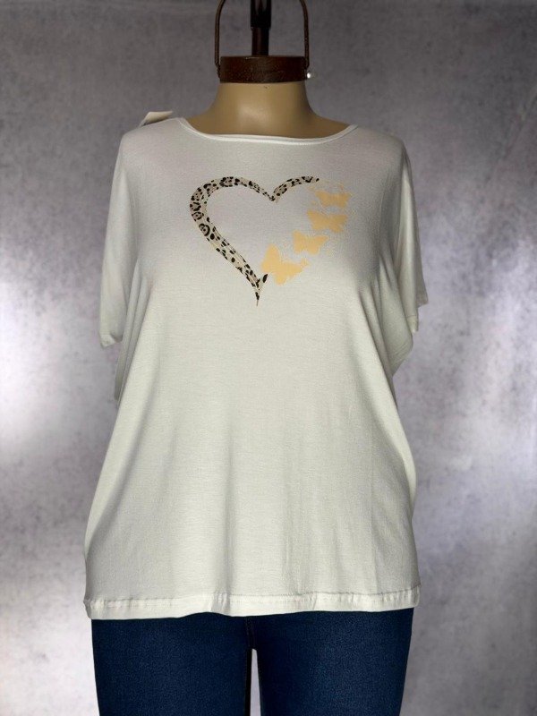 REMERA BLANCA CORAZON MARIPOSAS MODAL