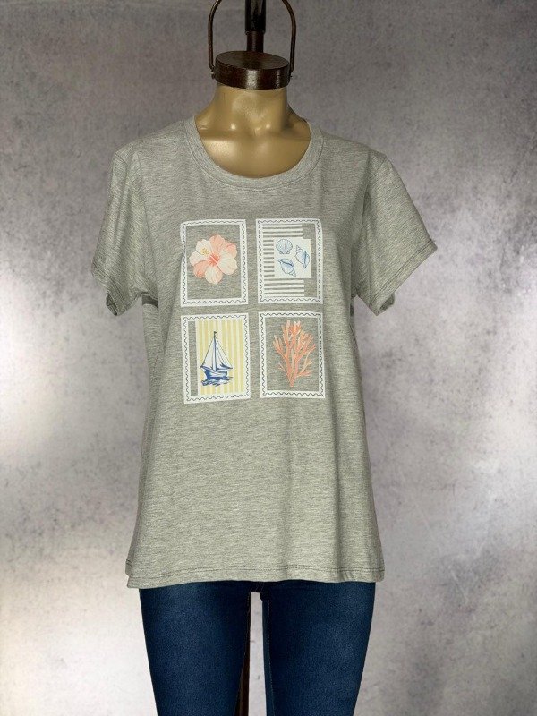 REMERA CUADROS MAR GRIS CLARA ALGODON