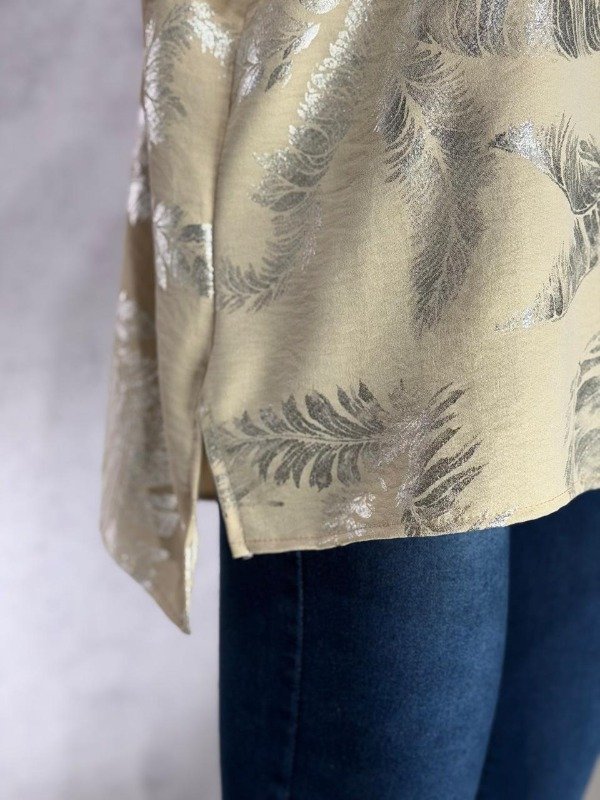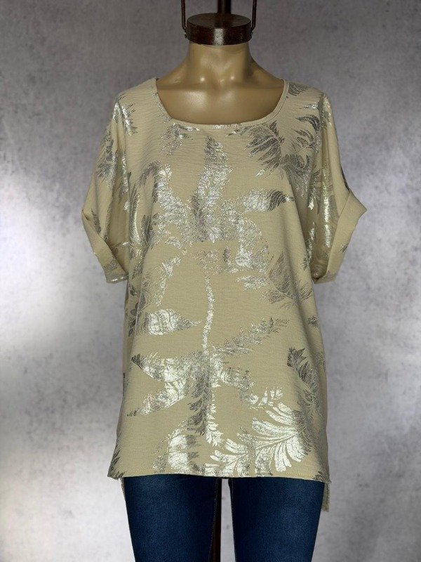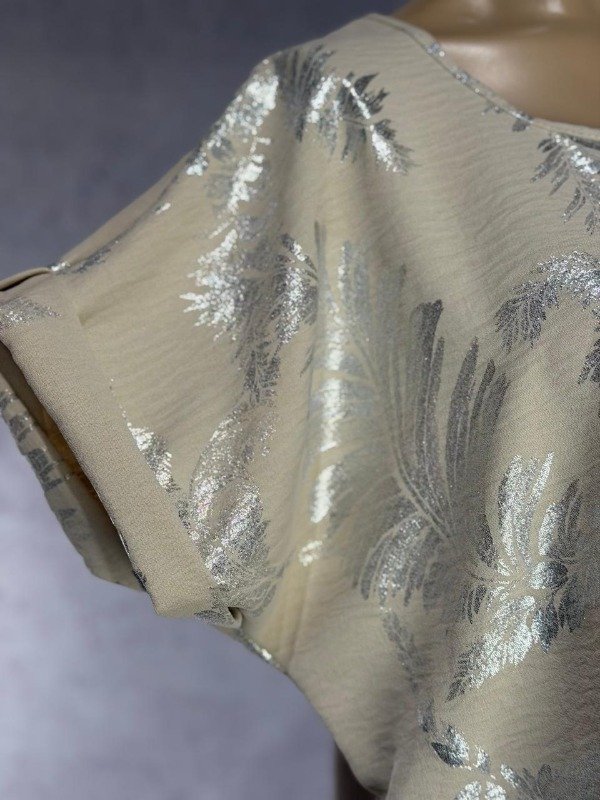 REMERA LINO CEY BEIGE PALMERAS PLATEADAS