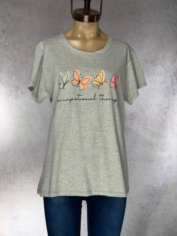REMERA MARIPOSAS GRIS CLARO ALGODON