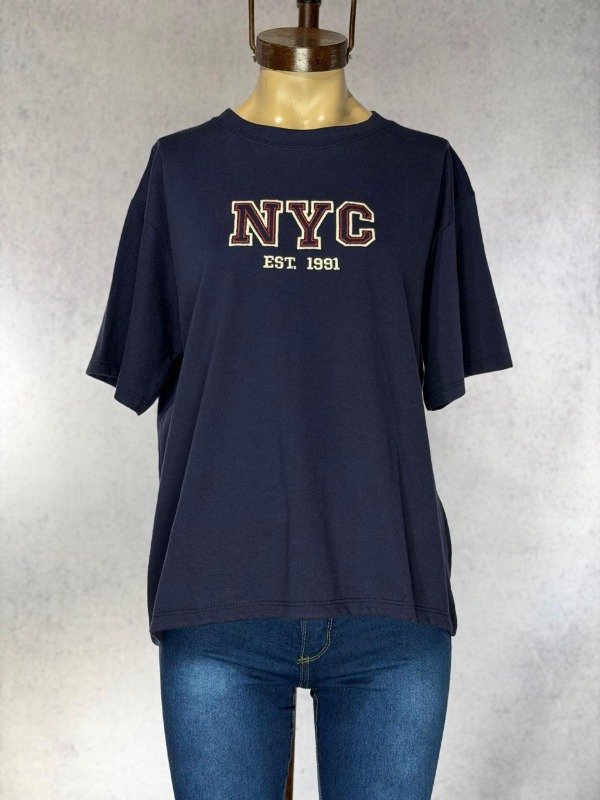 REMERA NYC AZUL BORDADA ALGODON