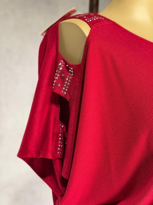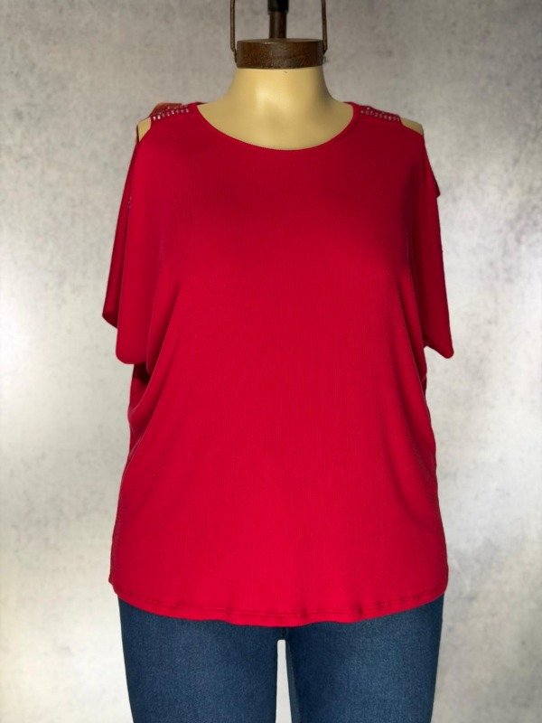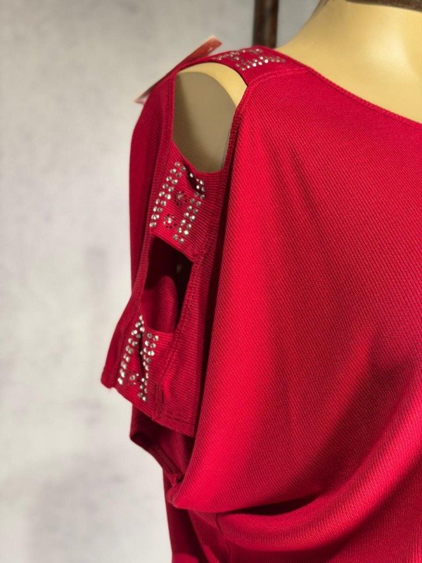 REMERA REGINA MORLEY ROJA HOMBROS DESCUBIERTOS