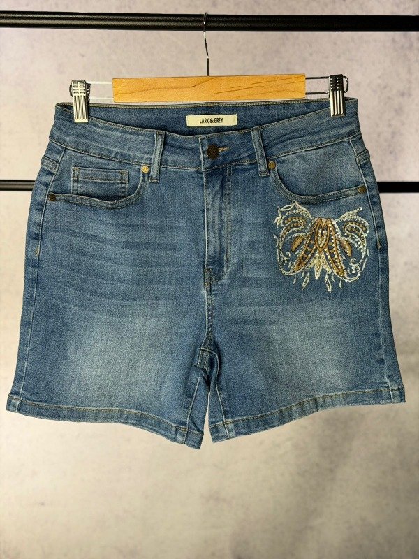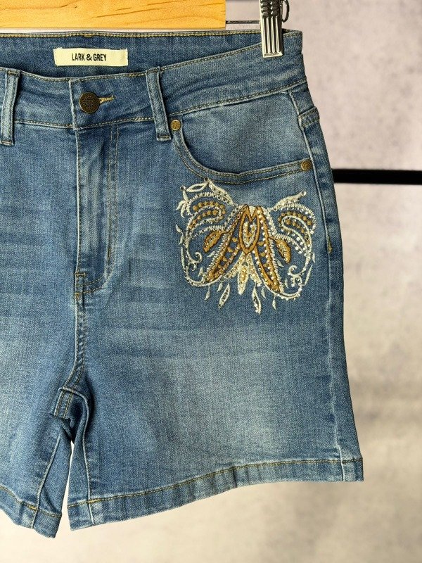 SHORT BORDADO CON STRASS ELASTIZADO CELESTE IMPORTADO