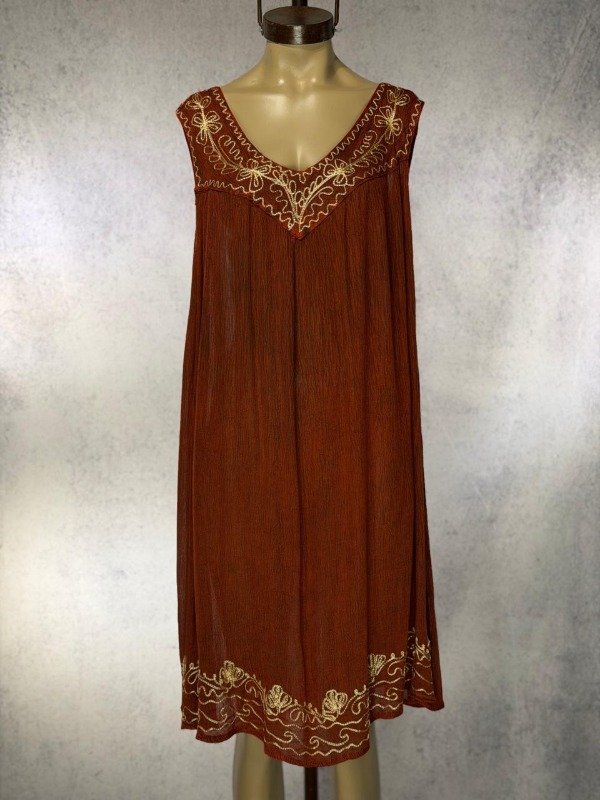 VESTIDO LADRILLO INDU MUSCULOSA BORDADO